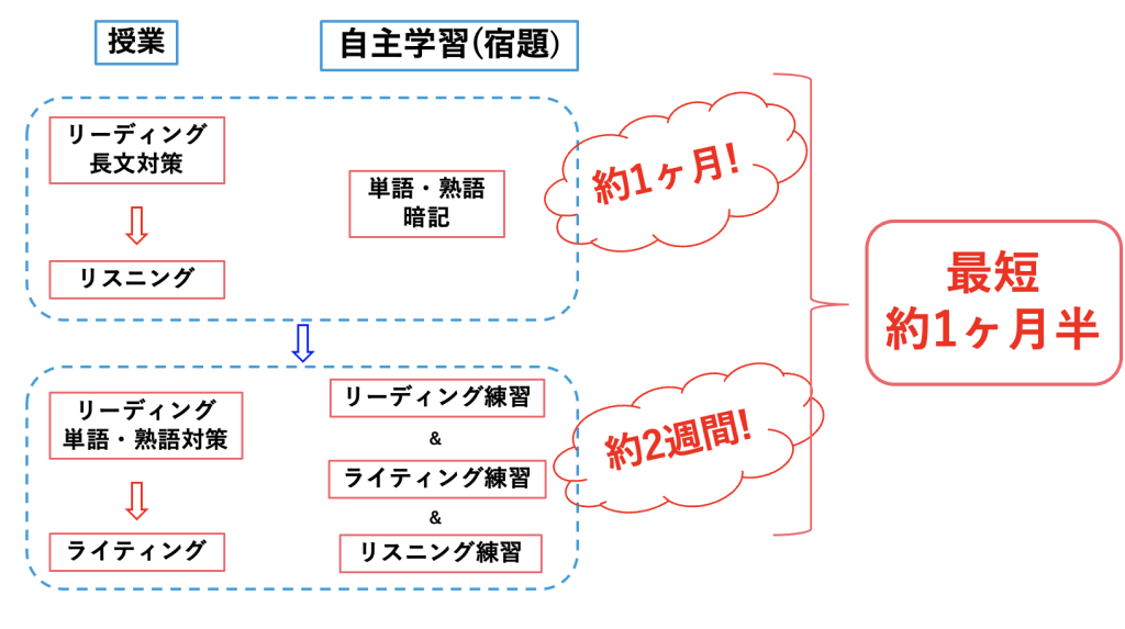 ※英検の対策期間には個人差があり、お子様の学習進度などにより1ヶ月半以上の期間を要する場合があります。ご了承ください。